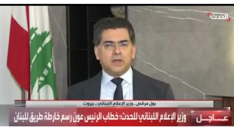 رأى وزير الإعلام المحامي الدكتور بول مرقص في حديث إلى قناة “الحدث” الفضائية أن “خطاب الرئيس جوزاف عون رسم خارطة طريق للبلاد تقوم على ممارسة السيادة الوطنية وتحويل لبنان من ورقة في جيب أي كان إلى دولة قائمة تفاوض عن نفسها”. وقال:” نأمل أن ننطلق من هذه المبادرة الرئاسية والتي نجحت بفضل دعم الولايات المتحدة الأميركية والأشقاء العرب، ولا سيما تحديداً المملكة العربية السعودية، إلى وقف دائم لإطلاق النار”.