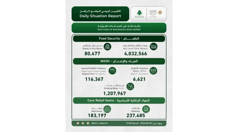 Read Moreأعلنت “وحدة إدارة مخاطر الكوارث” في السرايا الحكومية في تقريرها اليومي، أن “العدد الإجمالي للنازحين في مراكز الإيواء وصل إلى