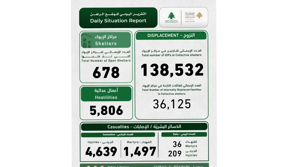تقرير رسمي: 678 مركز إيواء و138 ألف نازح… وارتفاع حصيلة الضحايا إلى 1497 قتيلاً